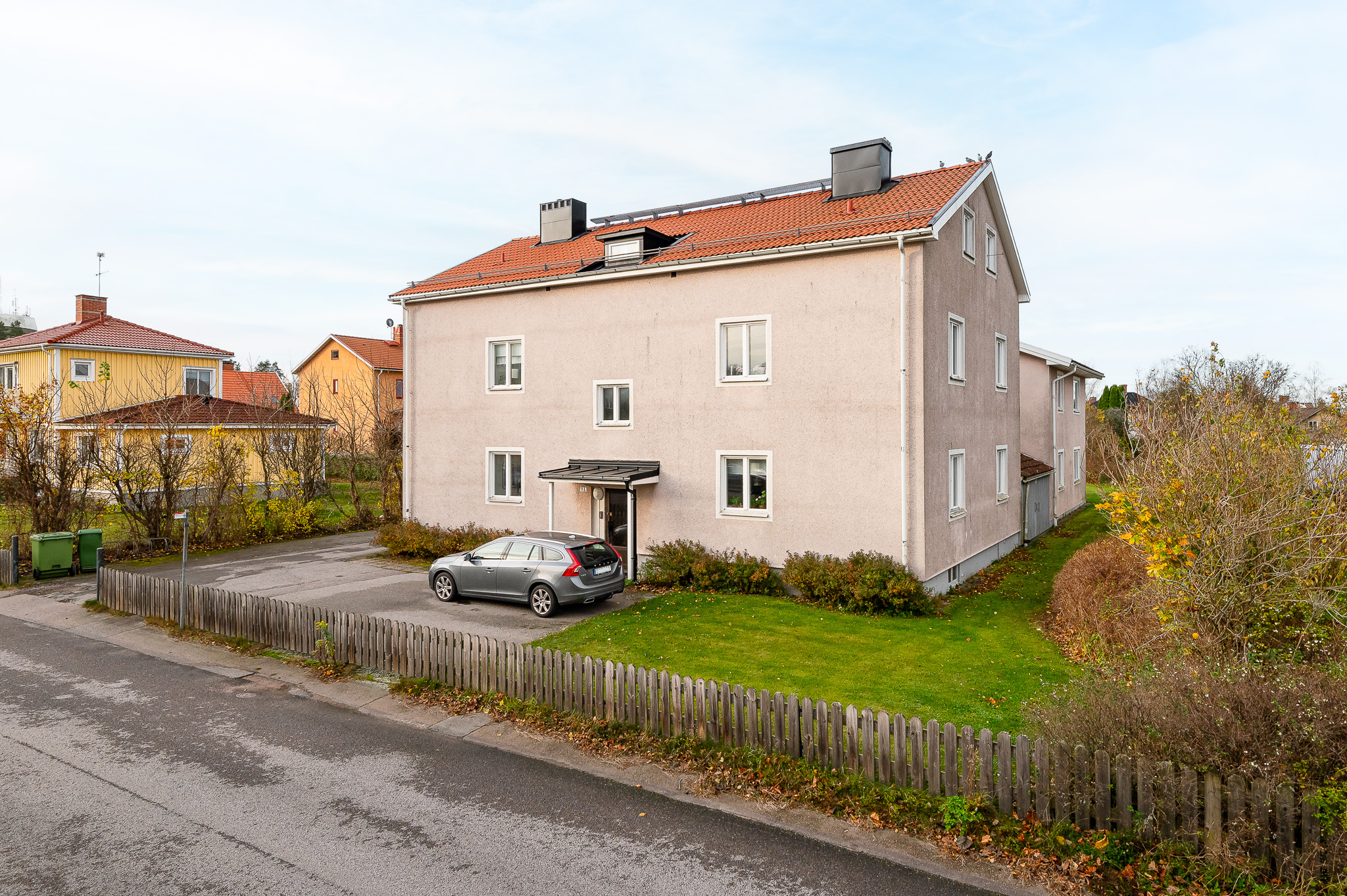 Cykelförråd och bilparkering finns på innergården med nära anslutning till samtliga lägenheter.